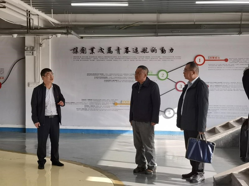 潘柯一行参观了我校创业孵化基地,实地了解创业孵化基地及入驻企业、创新创业团队的建设、发展等基本情况。