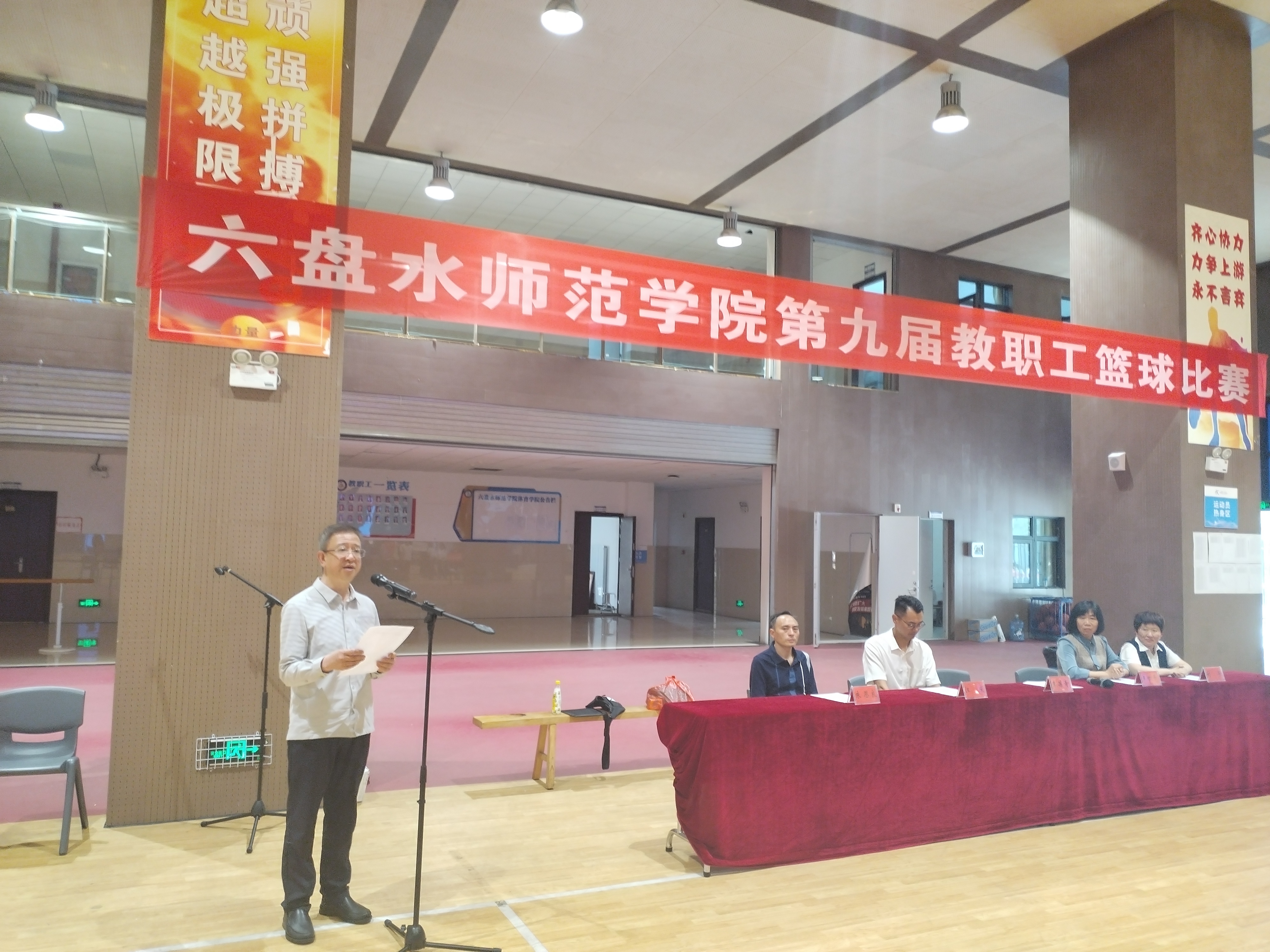 李葆青在致词中向本届教职工篮球比赛的胜利开幕表示热烈祝贺,向参与活动筹备工作的全体工作人员、各代表队致以亲切的问候!向给予本次活动大力支持的六盘水工商银行领导表示衷心的感谢!他指出,新的一年,全校教职工将全身心投入学校审核评估、硕士点建设、专业认证等核心任务。学校组织开展篮球比赛等职工文体活动,具体落实学校关于师生要“培育文艺和体育两个高雅爱好”,目的在于努力丰富和活跃教职工业余文化生活,使广大教职工在繁忙繁重的工作之外适当锻炼,维护身心健康,努力做到工作、生活质量两不误、双提升,提升幸福感。李葆青要求各代表队、全体运动员、裁判员、工作人员遵守比赛规则,保障本次比赛赛出风格、赛出水平、赛出道德风尚、赛出团结友谊。